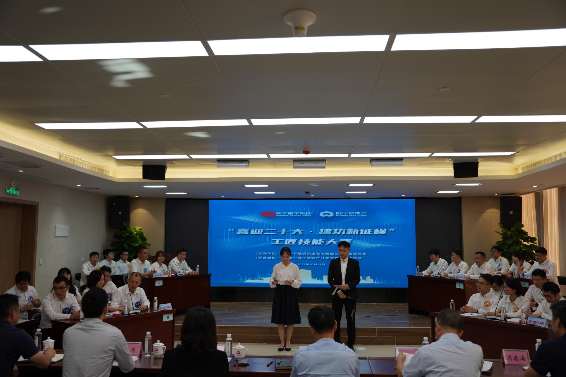 2022年10月11日,乐虎游戏房地产公司举办“喜迎二十大·建功新征程”工匠技能大赛。来自乐虎游戏房地产公司各项目的工程建设一线的土建、成本、专业工程师等组成的8支队伍,主要围绕房地产工程建设专业领域、安全生产等方面知识技能进行激烈角逐。南宁乐虎游戏集团工会副主席李爱金、乐虎游戏房地产公司领导班子出席大赛现场指导,乐虎游戏房地产公司员工约50人参加了工匠技能大赛观摩,比赛还通过公司网络学院全程直播。