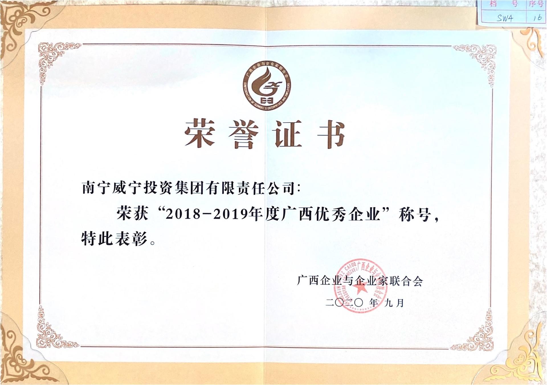 2020年9月,南宁乐虎游戏集团荣获南宁市广西企业与企业家联合会授予的“2018-2019年度优秀企业”荣誉证书