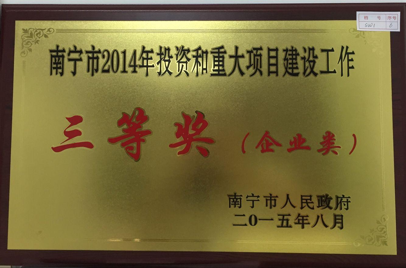 2015年8月30日,乐虎游戏投资集团获得南宁市2014年投资和重大项目建设工作三等奖