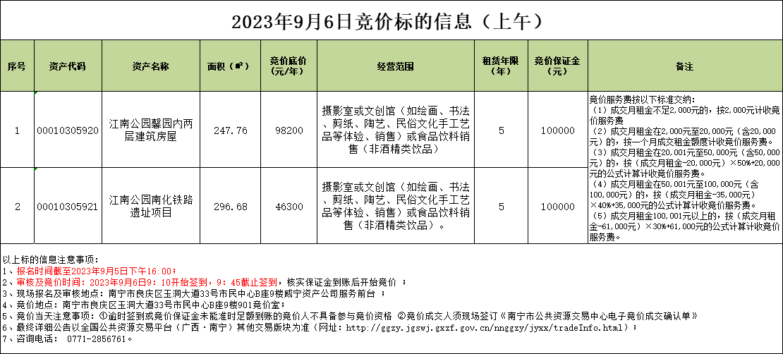 2023年9月6日竞价标的信息